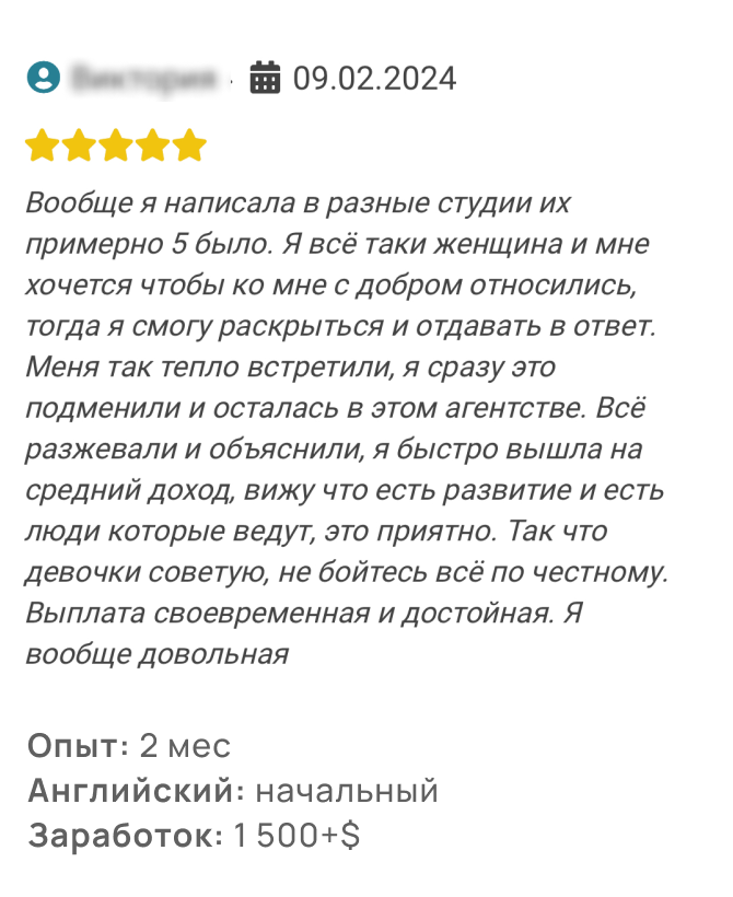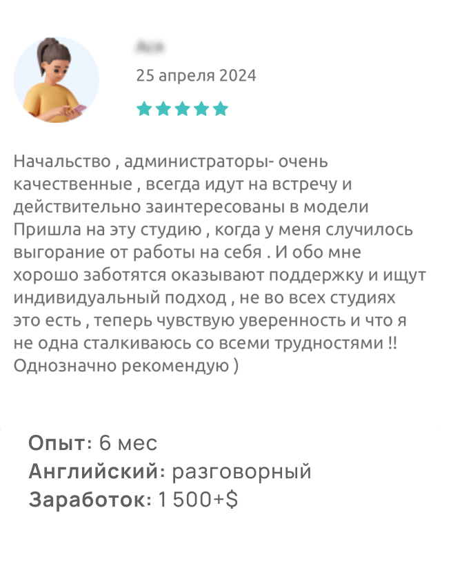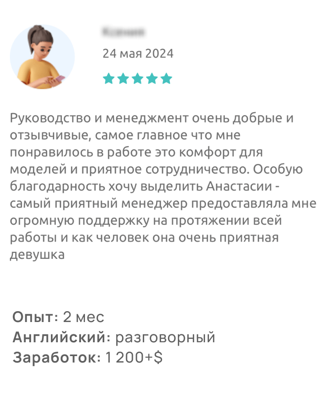 С обсуждения сохранения анонимности начинается наше собеседование. Мы хотим, чтобы у модели было полное понимание, как можно обезопасить себя. Как действовать, если произошел слив (Не нужно верить заявлениям кого-то о 100% гарантии защиты от слива, это невозможно) Но мы знаем, как тебя обезопасить на 98%. Твои родственники и друзья из Железногорска не узнают о твоей работе.
